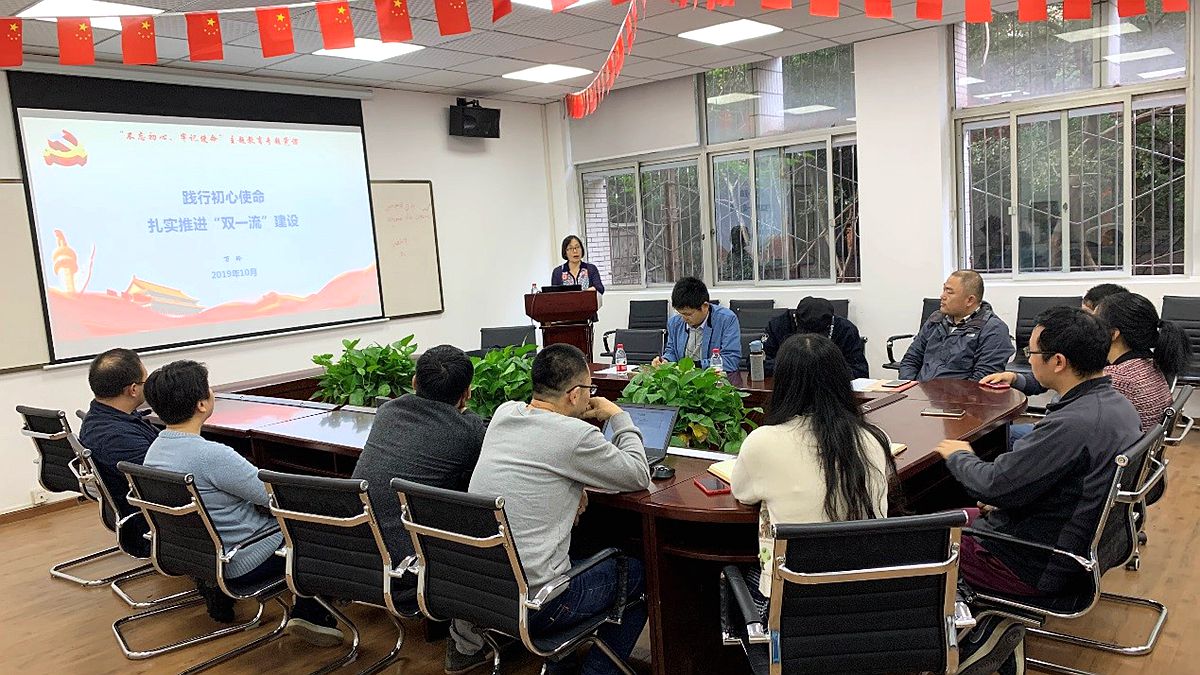 详情为深入贯彻习近平总书记系列重要讲话精神,全面推进“不忘初心、牢记使命”主题教育,切实把全院教工党员的思想和行动统一到中央决策部署上来。根据“不忘初心、牢记使命”主题教育的统一安排,2019年10月31日下午,黄色漫画 党委书记万玲以《践行初心使命、扎实推进双一流建设》为题为全院教工党员讲党课。 万玲从中国共产党发展历程回望初心使命、新中国成立70周年的辉煌成就理解初心使命、践行初心使命为“...