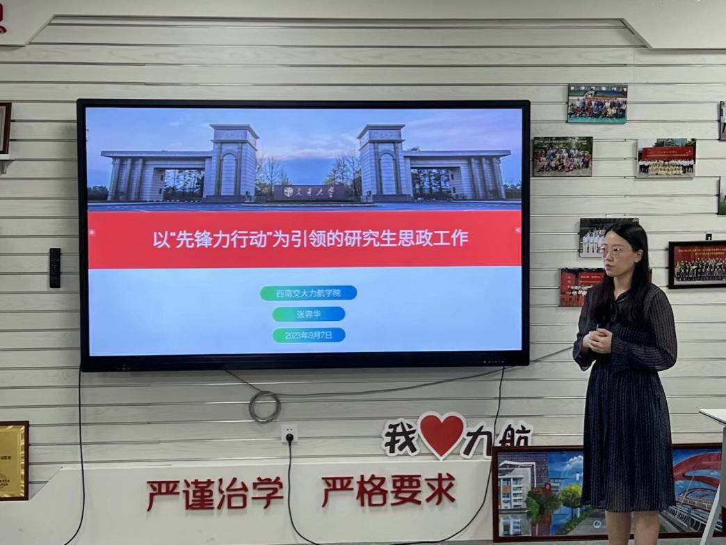 辅导员张容华、安晟斐分别做了《以“先锋力行动”为引领的研究生思政工作》和《“五育融合”理念下的社会实践与志愿服务体系》的主题交流分享,两学院学工队伍就学生党支部建设、“五育融合”培养、日常思想政治教育工作中的重点难点等问题进行了广泛交流。