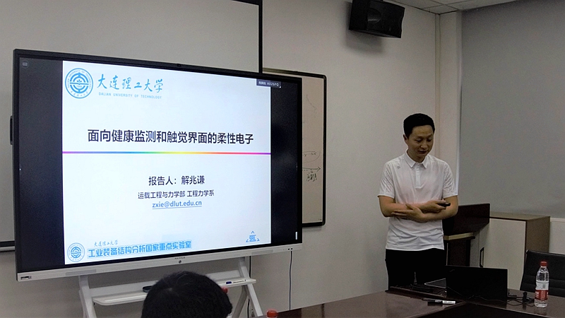 张亮首先代表学院对解兆谦教授的到来表示热烈欢迎,并对报告人作了简要介绍。解兆谦现任大连理工大学工程力学系教授,入选国家级青年人才项目,获辽宁省优秀科技工作者、大连市杰出青年科技人才等荣誉。其研究工作聚焦于柔性电子结构/器件的创新性力学设计、理论方法创新及其在生命健康等领域的应用,已发表SCI论文100余篇,其中以第一、通讯作者在Nature(1篇)、Science(2篇)、Nature/Science子刊(12篇)等高影响期刊发表论文40余篇。多次受到Nature、Science、ScienceDaily、US news、CNN、中国日报网、新华网等专业期刊及媒体的报道。