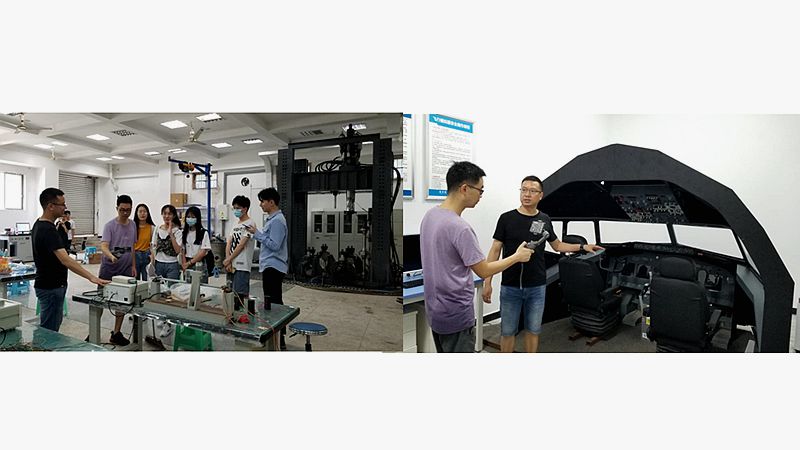 在实验室参观环节,学院实验室副主任刘浩老师和工程师尹瑞森老师与几位本校同学一起,通过视频直播的方式给各位同学展示了航空复合材料实验室、航空结构实验室、教学风洞实验室、微小飞行器教学实验室、飞行器虚拟仿真模拟教学实验室、工程力学教学实验室及材料制备实验室等。刘浩结合学院承担的科研项目情况对实验室设备的功能作了详细介绍,引起同学们很大兴趣。