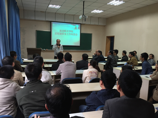 刘占芳副院长首先围绕“明确责任,安全防范”,对学院下属重庆市力学实验教学示范中心、工程力学实验室、航空航天工程实验室三个实验室(中心)及其下属27个分实验室的安全落实责任人,建立了“责任人全权负责制”;并从实验室的基本安全点出发,防止安全事故发生,在实验室安全管理规定执行、实验室卫生、实验室水电器状况、防盗设施、消防器材、大型仪器设备安全使用、高压、高温设备、危险化学品、病原微生物、放射性同位素与射线装置、易制毒化学品、实验室大型仪器设备使用记录等实验室实验室安全事故易发点方面出发,提醒各位老师在实验中切实排除实验室安全隐患;并给实验室的安全责任人敲响警钟,切实负起安全管理责任;围绕习近平总书记和李克强总理的安全生产指示,动员全体教职工严抓安全,防止火灾、爆炸等安全事故的发生。