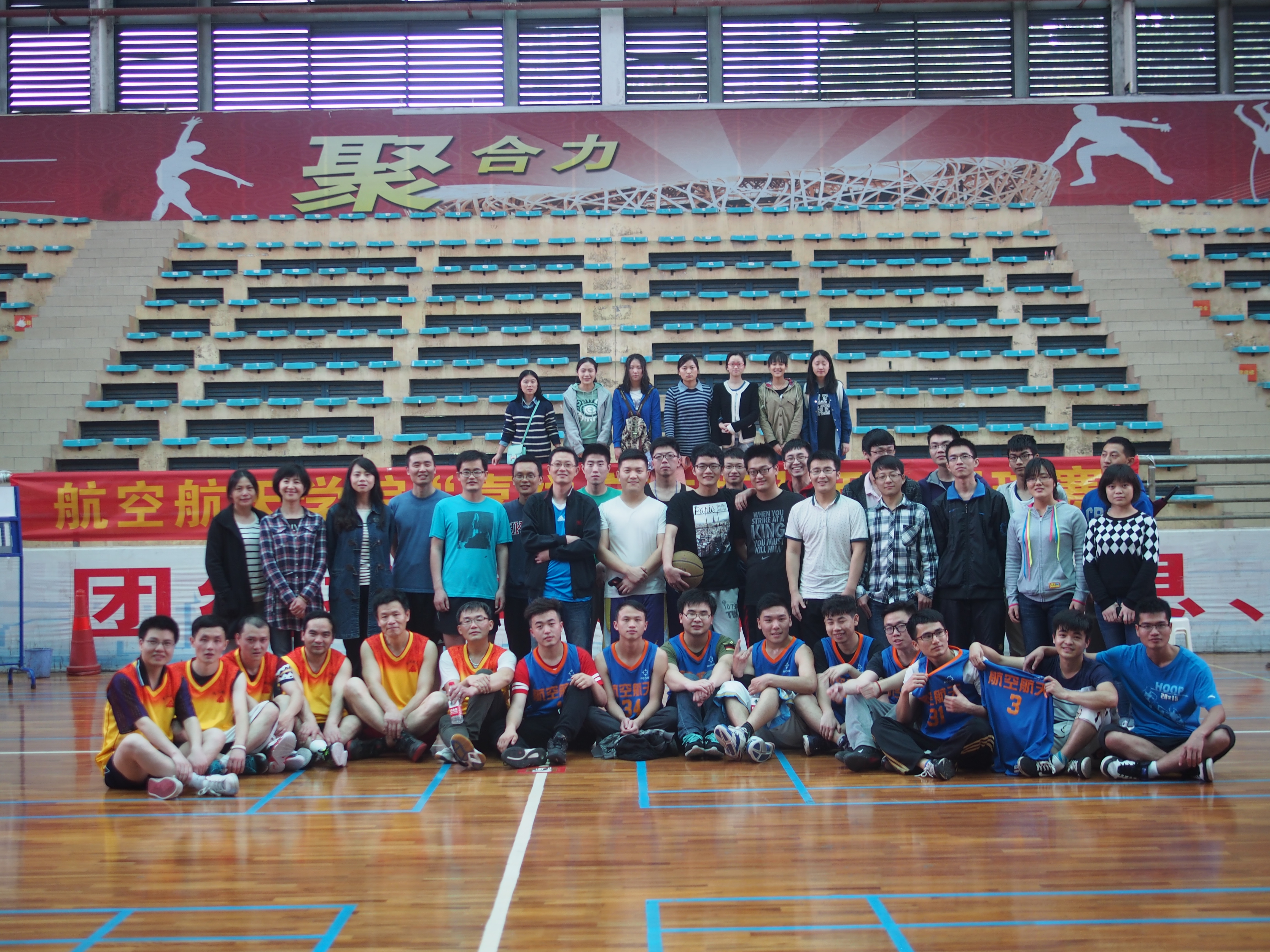 篮球赛于下午三时正式开始,一声哨响,双方就展开了精彩的对攻,两队你来我往,陷入胶着状态。赛场外,在张华老师的一次漂移上篮后,现场热情瞬间被点燃,观众们呼声热烈、掌声连连。与此同时,由大三大四航院学子组成的学生代表队也不甘示弱,行云流水的配合,一气呵成的上篮,都是对比赛激情的诠释。