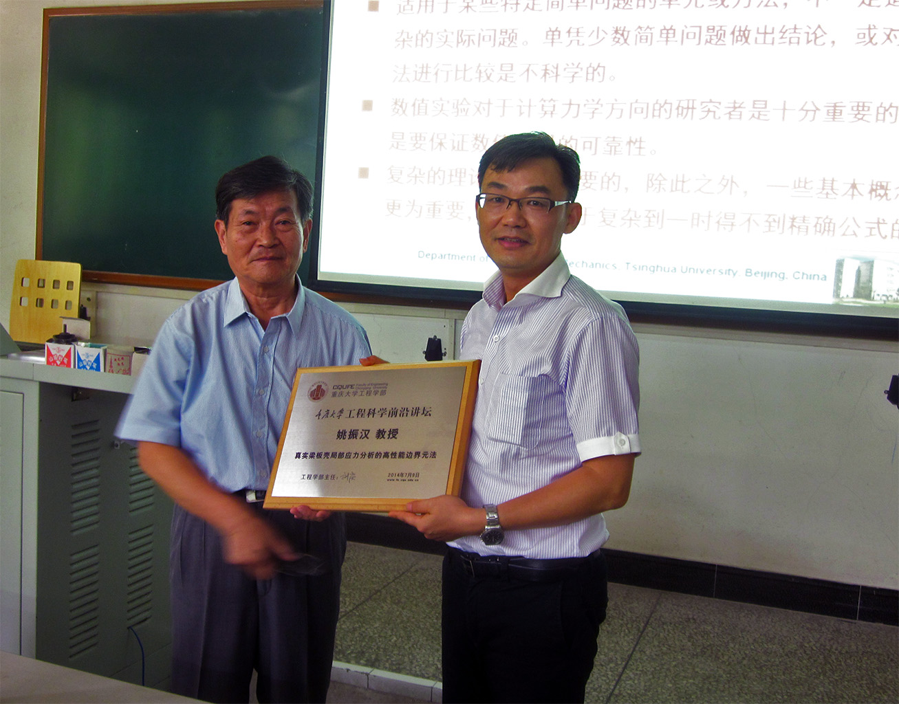 姚振汉教授做了关于真实梁板壳局部应力分析的高性能边界元法的报告。姚教授介绍边界元法的精度验证和一种高精度边界元法计算方案,并针对相应薄板梁弯曲问题进行了三维边界元分析。姚教授还特别介绍了自己从事边界元方法35年以来的心得,特别是在数值计算中对于离散误差分析的重要性等都是非常难得的经验之谈。