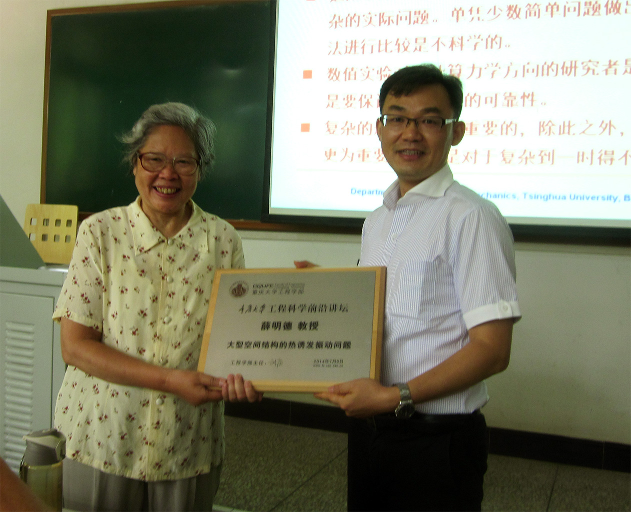 薛明德教授做了关于大型空间结构的热诱发振动问题的学术报告。报告从我国航天器大型结构设计的国家需求出发,介绍了热诱发振动产生的机理以及解决大型空间结构热诱发振动问题的技术关键。薛教授还回顾了团队十多年来在该方向上的研究经历,让人十分敬佩。