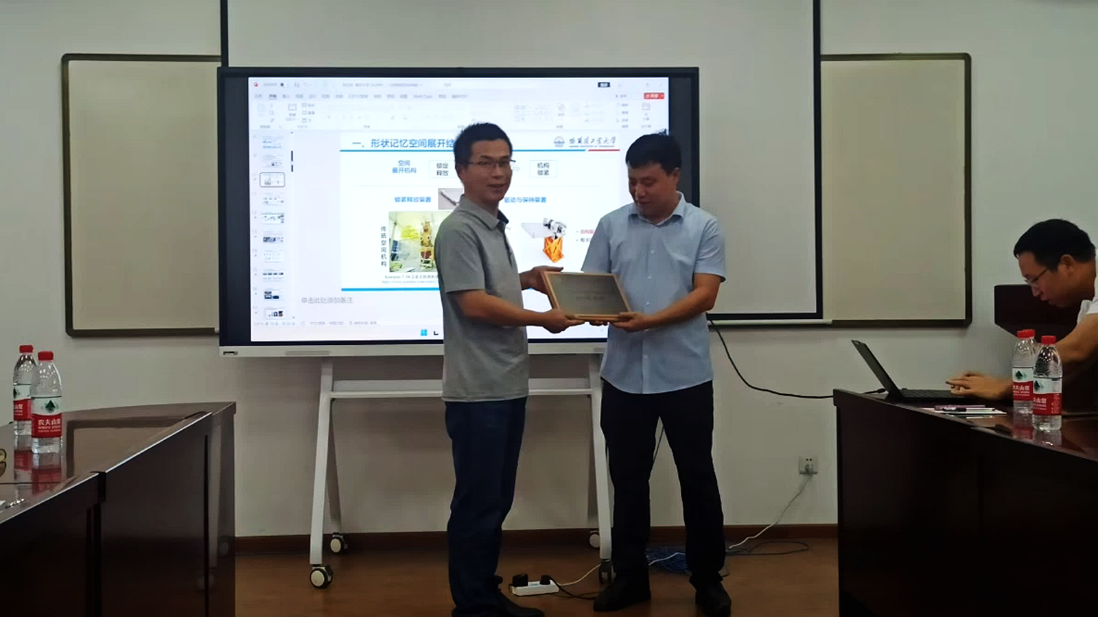 在报告中,刘立武教授就形状记忆聚合物在航天航空、智能仿生、生物医学等领域的研究进展进行了介绍。首先,刘立武教授展示了可展开铰链、豆荚杆、智能锁紧释放机构等多种空间结构,并对构型、力学性能可调节、可重构的超材料设计方法进行了总结。他表示,4D打印形状记忆变形结构当前面临实用价值有限的困境,但未来智能软材料在力学、结构及其航天等领域具有广阔的应用前景。