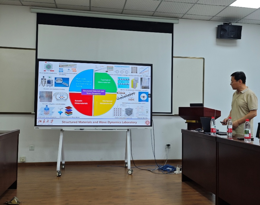 黄国良教授在报告中提到,智能结构动力学领域是一个快速发展、正在改变科学与技术格局的新兴研究方向。他介绍了团队在智能结构材料方面的研究工作,重点涵盖主动微结构设计、理论建模、新波动现象及其实际工程应用:他首先展示了多种智能超表面,旨在实现波的主动亚波长波的实时调控。这一能力在低频振动控制和极端波动操控方面展现出巨大的应用潜力。为了深入理解其工作机制,黄国良教授团队进一步建立主动力学与动力学理论框架,以揭示集成传感器与致动器网络的智能超材料的奇异行为,特别是针对非常规动力学控制和行为的研究。最后,他以拓扑波导主动调控与超灵敏传感等工程前沿技术为例,介绍了团队在智能拓扑超结构及其动力学应用方面的研究。