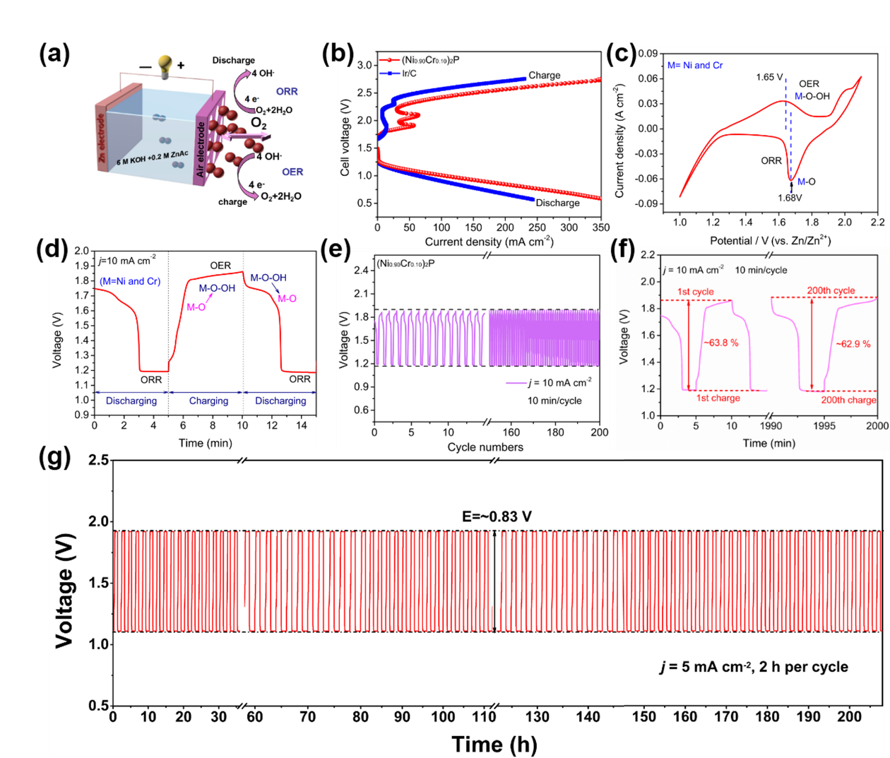 可充电锌空气电池因具有极高的理论能量密度、环境友好以及资源丰富的优势而被认为是下一代理想的军/民用电源技术。但由于缺乏高效且经济适用的电催化材料,致使其存在能量效率低、循环稳定性不佳等问题,从而大大限制了其实际应用。