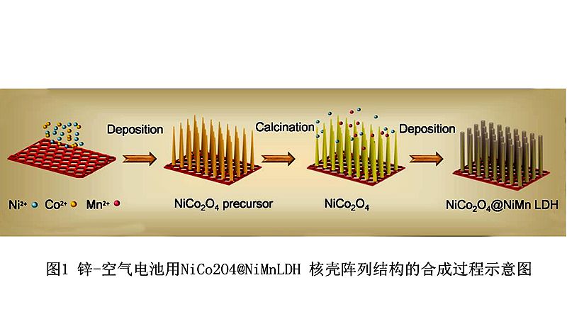 锌-空气电池因其成本低廉、安全性高、环境友好、能量密度高等特点而成为能量型电源系统的重要选项;它的理论能量密度达1084Wh/kg,实际可实现的值也高达400Wh/kg以上,是目前锂离子电池电芯的2倍以上,从而成为近年来能源存储领域最重要的研究方向之一。该团队开发了NiCo2O4/NiMn层状双氢氧化物(LDH)核壳阵列结构用作高效稳定的锌-空气电池空气电极材料及催化剂。通过合成条件的控制可将NiMn LDH片层厚度降低到3~5nm以下,显著增加了材料的电化学活性面积。最终,由于核壳阵列结构两组分间的协同增强效应以及高的活性面积,其过电位在10和100 mA/cm2时分别为255 mV和338 mV,明显优于商业Ir/C和Pt/C催化剂。组装成锌-空气电池后,其一次电池的最大功率可达160.8mW/cm2、开路电压为1.4V、能量密度可达866Wh/kg;而可充电电池在5mA/cm2经500次循环后其充放电的电压差值仅增加45mV,在20mA/cm2经500次循环后其充放电的电压差值仅增加20mV,循环性能十分优异。该研究成果已发表于国际著名期刊Journal of Materials Chemistry A(JMCA,IF=8.867),题为“Core/shell design of efficient electrocatalysts based on NiCo2O4 nanowires and NiMn LDH nanosheets for rechargeable zinc–air batteries”,并选为期刊的HOT ARTICLE。论文第一作者为黄色漫画