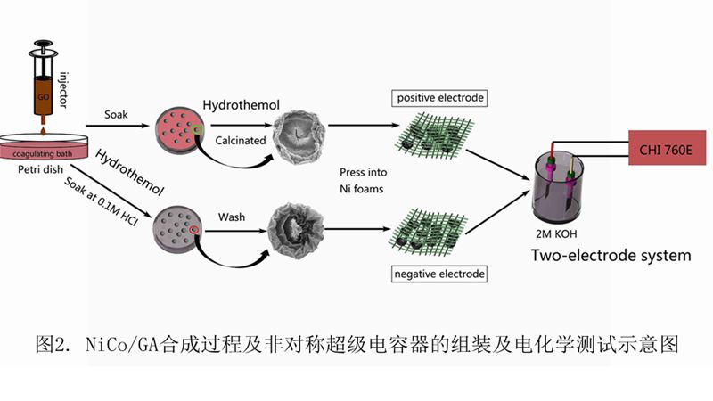 在高功率储能器件方面,该团队最近还在三维石墨烯水凝胶合成领域取得了重要进展。该团队与新加坡南洋理工大学合作,创造性的发明了一种合成三维石墨烯水凝胶的新方法——液滴/胶体絮凝法。该法利用胶体絮凝原理以及简单的水波纹传播,通过将吸入注射器内的一定浓度的氧化石墨烯液,逐滴滴加到特定凝固浴中,即可制备氧化石墨烯水凝胶,再经过洗涤、干燥、高温煅烧,即可得到还原氧化石墨烯气凝胶。