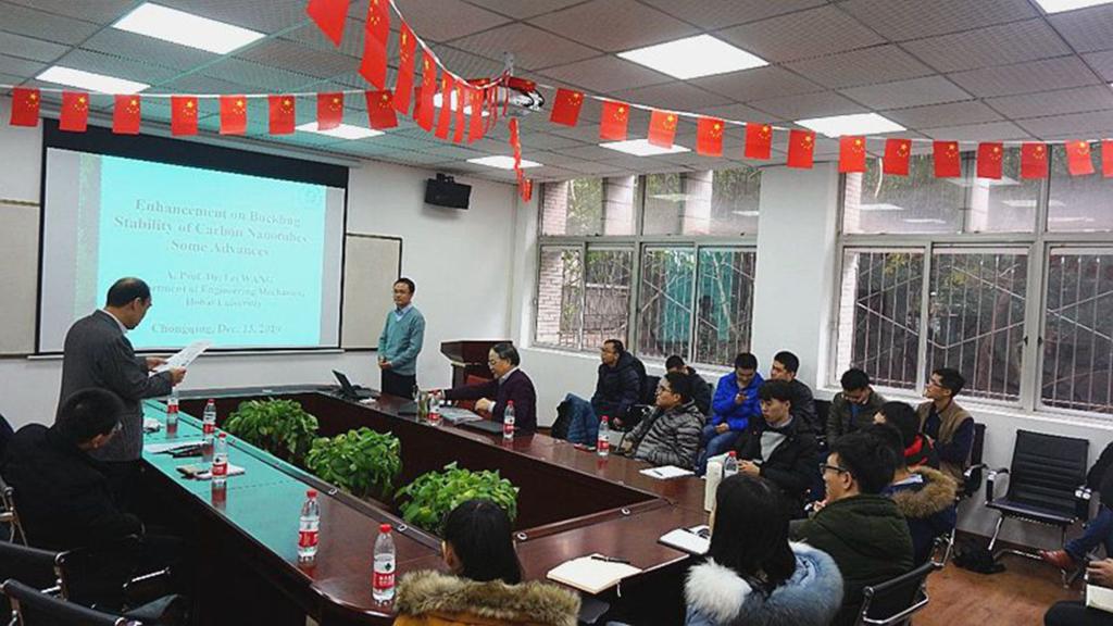 邀请,河海大学工程力学系章青教授、王磊副教授在理科楼205会议室出席由工程学部主办的工程科学前沿讲坛,章青教授作了题为“非局部近场动力学及其若干应用”、王磊副教授作了题为“Enhancement on Buckling Stability of Carbon Nanotubes --- Some Advances”的学术报告。报告由黄色漫画