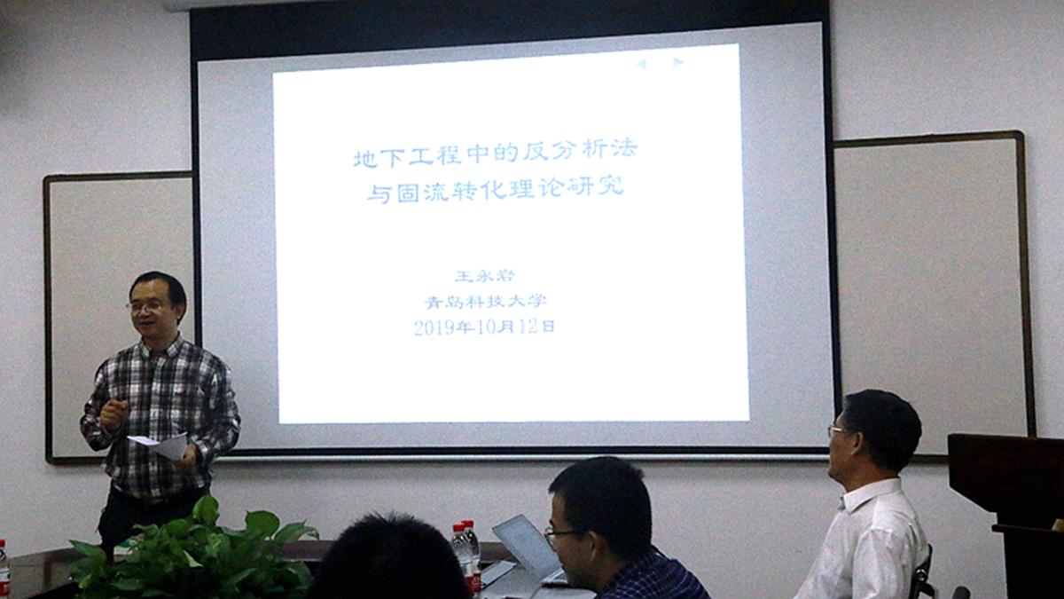 王永岩教授首先介绍了位移反分析思想方法——采用了以实测位移(或应力)为理论根据,利用优化方法,将计算应力(或位移)向实测应力(或位移)逼近,从而反推算出作用在巷道支护上的围岩压力分布。基于上述思想方法,发展了临时支护压力的预测方法。然后,王永岩教授介绍了其研究团队在类软岩材料的固流转化的数学关系描述、模拟计算和模拟实验方面的研究工作。最后,王永岩教授从基础力学教学改革的发展、基础力学教改中存在的问题、解决这些问题的办法和措施以及团队的教改工作和体会四个方面,分享了从事教学工作以来的感悟。