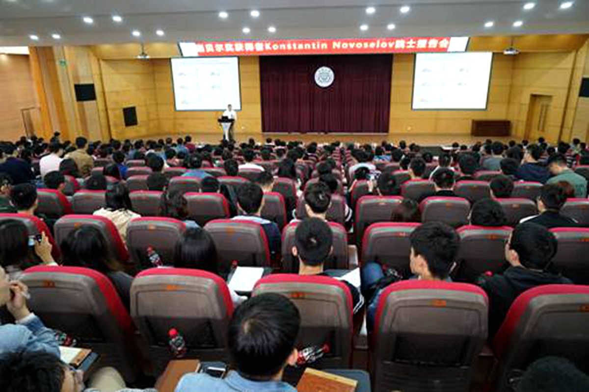 会见结束后,Novoselov院士出席了工程学部主办的工程科学前沿讲坛,在民主湖学术报告厅为300余名师生作了题为《Materials in the Flatland》的学术报告。报告由胡宁主持。