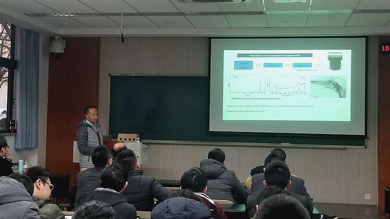 报告开始,胡宁教授首先对闫澄教授作了简要介绍。闫教授的主要研究领域包括复合材料、纳米材料、生物材料、材料性能表征及模拟。他已获得800万澳元的研究经费,包括2项澳大利亚研究理事会(ARC)研究员及11 项ARC研究项目,发表国际期刊论文180篇。 闫教授对材料的结构性能关系,材料界面及先进复合材料进行了广泛的研究。通过广泛的国际合作,他领导的小组还对能源材料及生物材料进行了研究。随后,闫教授从纳米材料说起,并结合他目前所做的课题,详细地介绍纳米材料和结构显示出独特的性能和广阔的应用前景。闫教授从新能源开发,生物医学方面阐述纳米材料与结构的力学表征。他以锂离子电池举例:该技术以其能量密度高、寿命长等优点,越来越广泛地应用于便携式电子设备和电动汽车中。纳米材料可适用于先进的能源系统,以提高转换效率、改进存储能力和提升的可靠性,为解决全球能源需求提供新的方案。闫教授还介绍,他团队近期的工作致力于纳米碳薄膜,机械特性的建模,同时力争在有机化合物(MOF)、生物医学材料和电极材料寻求突破方向,此类研究成果将在轻质结构、微电子、能量收集和存储、生物器件和组织工程方面得到广泛应用。