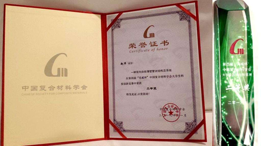 赵洋团队的作品“一种新型的薄壁管状结构及系统”获得全国二等奖。