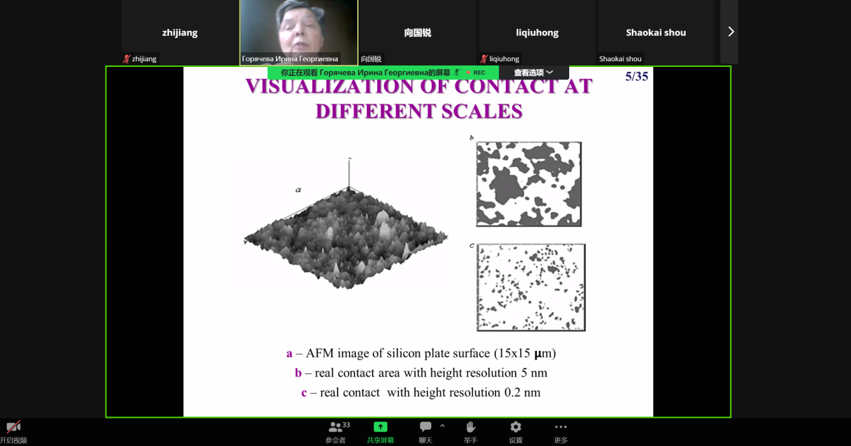 学院Feodor M. Borodich教授介绍了本次讲座的安排及嘉宾背景。Irina Goryacheva教授是俄罗斯科学院(RAS)资深院士,接触力学和摩擦学领域的世界顶级专家、俄罗斯国家理论与应用力学委员会主席、俄罗斯摩擦学委员会主席、国际摩擦学委员会副主席以及 IUTAM 主席团成员。
