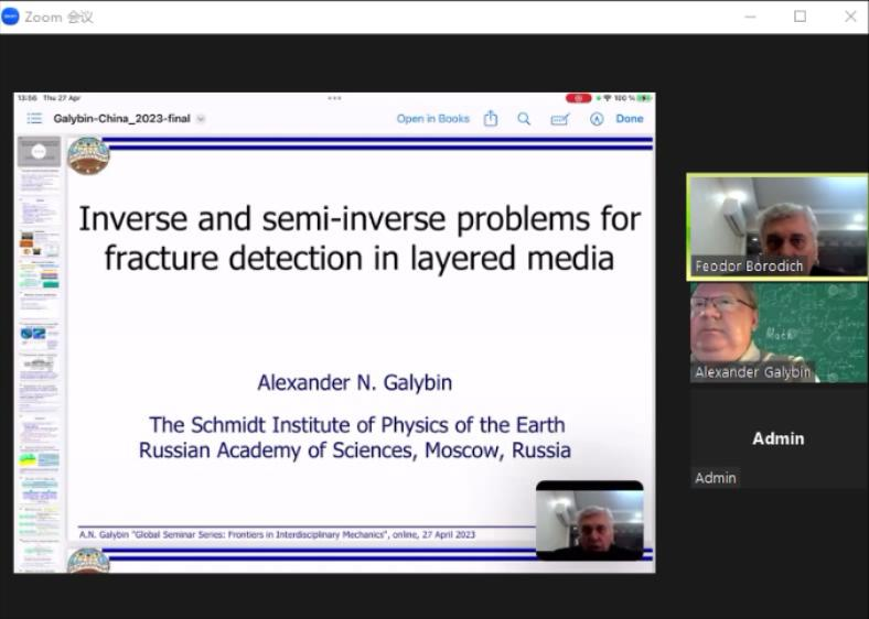 “力学交叉融合”全球前沿学科系列讲座第10期和第11期分别在线召开。讲座先后邀请欧洲科学院院士Julius Kaplunov教授开展了主题为“Multiparametric Analysis of High Contrast Elastic Laminates”的学术讲座、俄罗斯科学院地球物理学Schmidt研究所首席研究科学家(IPE RAS)Alexander N. Galybin教授开展了主题为“Inverse and semi-inverse problems for fracture detection in layered media”的学术讲座。