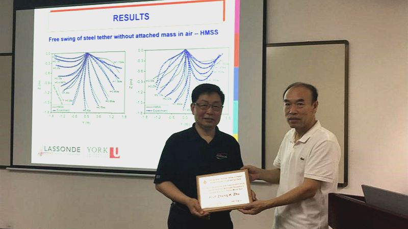 胡宁教授首先介绍了朱正宏教授的研究简历。朱正宏教授本、硕、博均毕业于上海交通大学力学专业,并获得加拿大滑铁卢大学机器人控制专业硕士学位及加拿大多伦多大学机械工程专业博士学位。目前任加拿大约克大学机械工程学院的department chair教授。他同时是加拿大工程研究院院士、美国机械工程师协会(ASMEFellow、中国机械工程协会(CSMEFellow、美国飞机工业协会(AIAAassociate Fellow。作为负责人主持了多项加拿大国家科学工程研究基金(NSERC)、加拿大航天署(Canadian Space Agency)等项目20余项。目前,他作为负责人正在主持由加拿大航天署资助的“立方星电动系绳离轨空间演示”项目,计划于2018年底发射两颗由100米长的电动系绳连接的立方星,在空间演示电动系绳离轨技术。