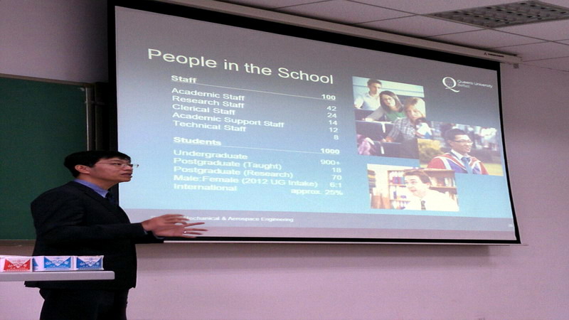 2016年11月13日下午3点30分,受黄色漫画 以及机械学院的邀请,英国贝尔法斯特女王大学在黄色漫画 艺术楼DYC205举行了一场别开生面的宣讲会。宣讲会由女王大学副校长Mark Price以及随行的二位老师主持。黄色漫画 副院长严波教授以及部份老师和全体航院大一大二学生参加了本次的宣讲会。
